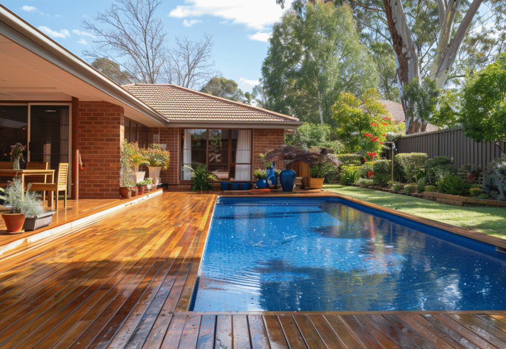Hardwood timber, composite boards, and slip-resistant paving are popular choices. Composite is ideal for low maintenance, while hardwood offers a natural look that suits many Melbourne backyards.